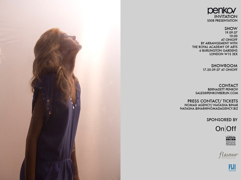 Bernadett Penkov ist mit ihrem Label penkov eingeladen worden, während der London Fashion Week im September 2007 auf der Show der renommierten Show-/Showroom Plattform „On|Off“ ihre SS 08 Kollektion zu zeigen.